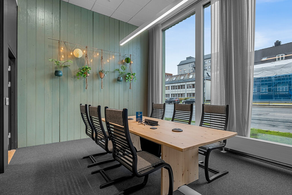 Fredrikke Qvam er et møterom med styreoppsett med plass til 8 personer.